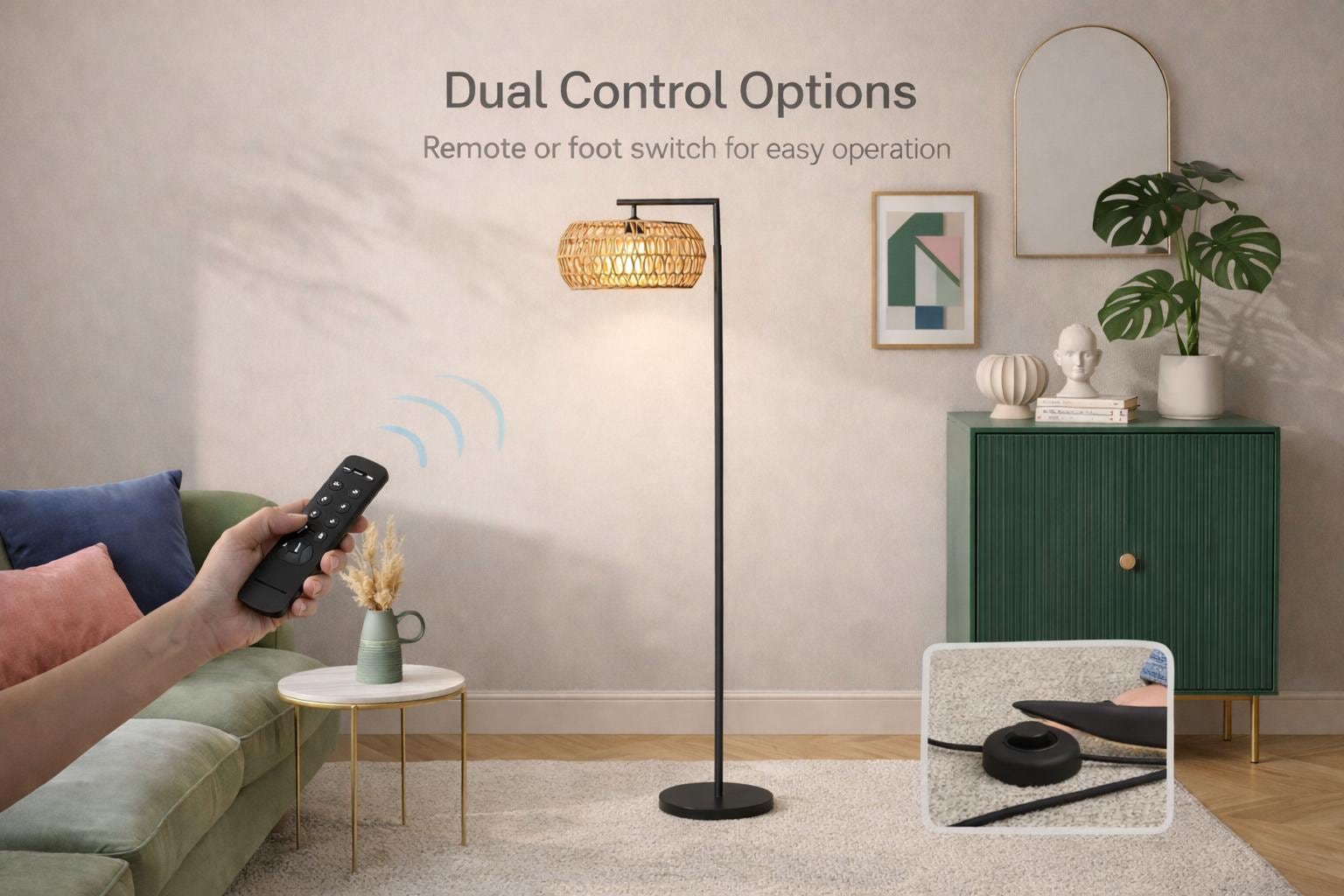 Boho Floor lamp - Adjustable rattan lamp shade - remote control option