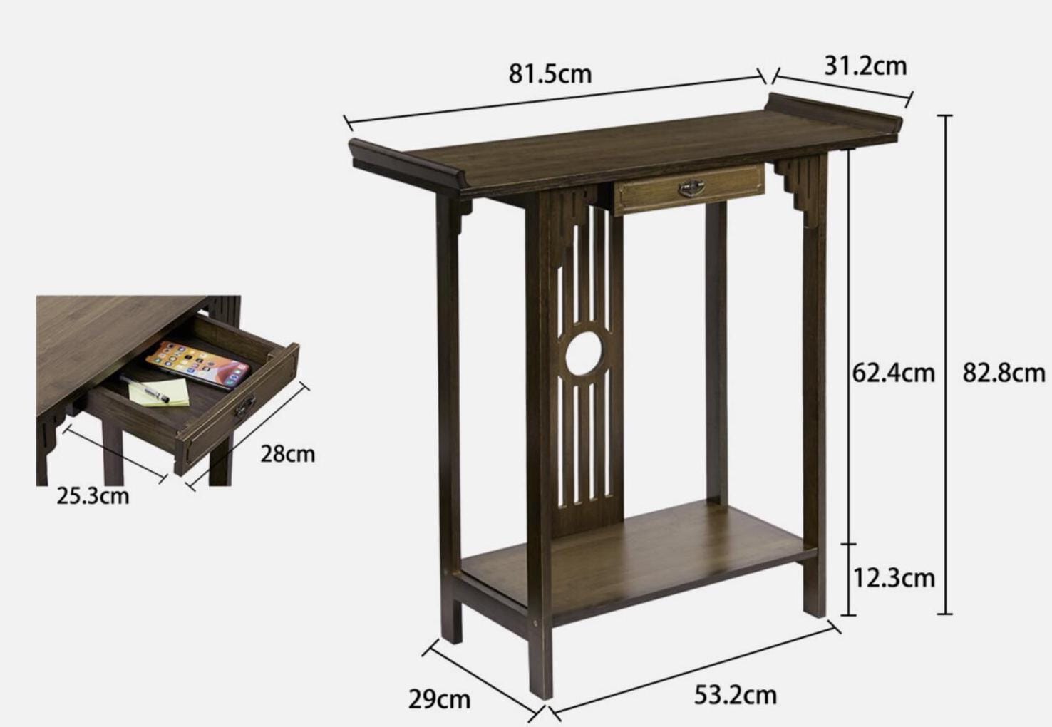 Narrow Bamboo Console table - Japanese Entryway Display