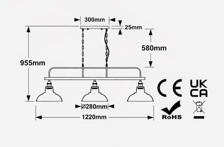 - Bulb Requirement: 3 × ES/E27 (max 60W each, not included)